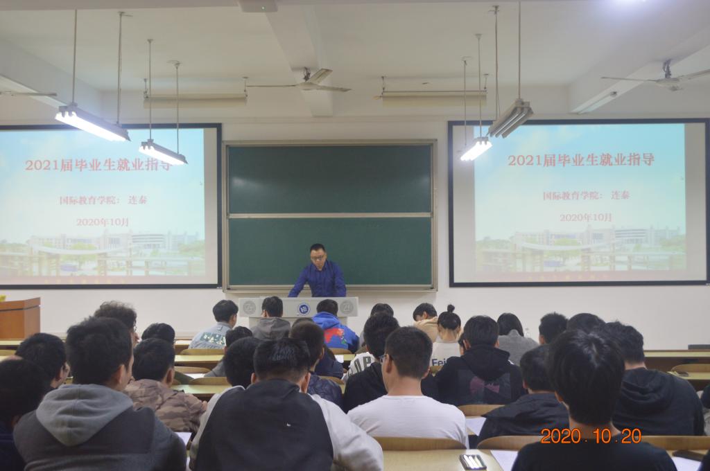 为了帮助同学们全面了解当前的就业形势与政策,树立正确的就业观和择业观,提升就业技能,2138cn太阳集团古天乐于10月20日下午在D301教室开展了就业指导讲座。讲座由党总支副书记连泰主持,我院17级本科生120余人参加。