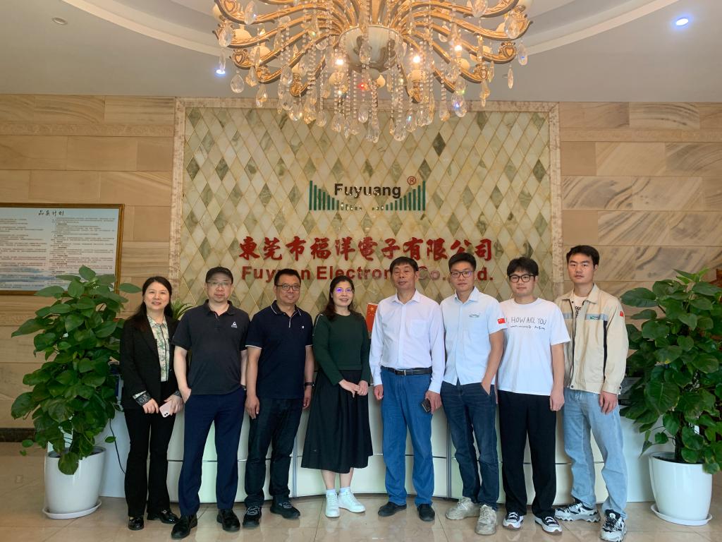 为加强校友联系,增进校企沟通,拓宽毕业生就业途径,4月25日上午,2138cn太阳集团古天乐院长曹丽英、党总支副书记连泰一行,前往校友企业东莞市福洋电子有限公司访企拓岗。公司董事长黄少成、副总经理黄雄、业务经理李思宇出席座谈会。
