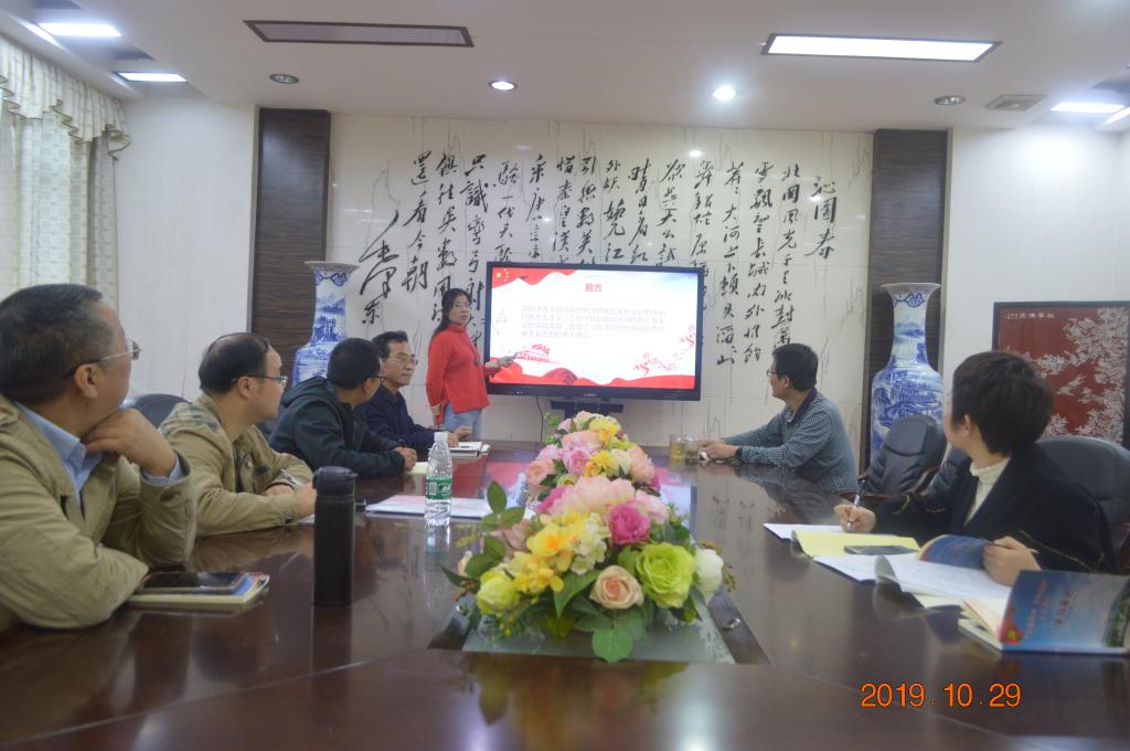 10月29日下午,2138cn太阳集团古天乐(国际交流中心)教工党支部书记曹丽英在E105给全体教工党员上了“深刻理解习近平新时代中国特色社会主义思想”专题党课。