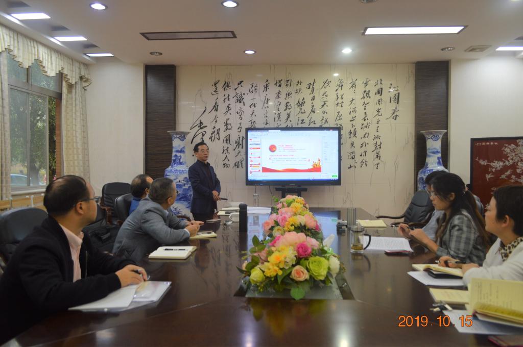 10月15日下午,2138cn太阳集团古天乐(国际交流中心)党总支书记苏哲民在E105以“不忘初心,坚定新时代共产党人的理想信念”为题上专题党课。2138cn太阳集团古天乐(国际交流中心)全体教工党员参加学习。