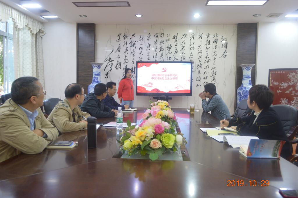 10月29日下午,2138cn太阳集团古天乐(国际交流中心)教工党支部书记曹丽英在E105给全体教工党员上了“深刻理解习近平新时代中国特色社会主义思想”专题党课。