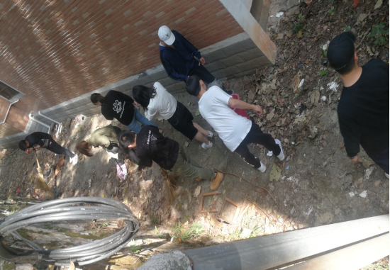 中午12点30分,党员同志们准时到达集合地点,在院党总支书记苏哲民的带领下,全体党员同志对明德五、六栋宿舍后山及周围的食品盒、塑料袋等垃圾进行清理打扫。大家捡拾了绿化带里的烟头、塑料袋、丢弃废旧衣物等,清理了宿舍周围的各种大型树枝和废弃杂物。党员同志们不惧脏和苦,全身心投入到劳动中。经过大家近两个小时的共同努力,明德五、六栋宿舍周围边环境变得整洁美观多了。