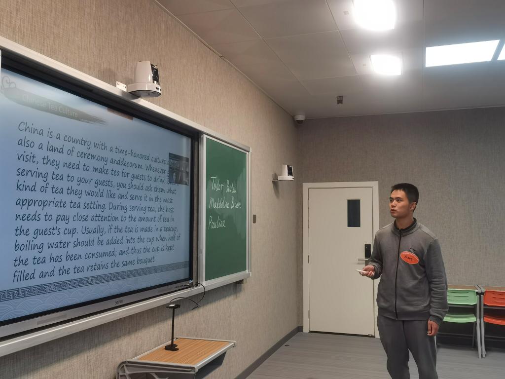 随后,英方同学也向我们展示了他们具有代表性的文化遗产:比如丰富多彩的苏格兰民间诗歌、别具一格的苏格兰裙、古老的盖尔语、珍贵的保加利亚玫瑰精油……这些都让中方同学体会到了世界文化的多样性,领略到了遥远的异域风情。