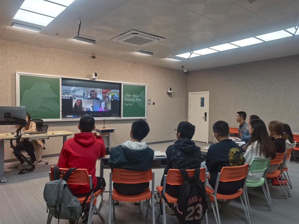 在自由交流环节,中英方同学还详细了解了各自的喜好、生活习惯、学习情况等细节。隔着屏幕的交流瞬间缩短了双方的地理距离,使同学们感受到了文明互鉴和交流的价值和意义。最后,双方纷纷表达期待进一步交流的愿景,希望疫情尽快结束,早日赴对方所在的学校和国家交流学习。