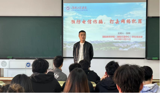 2138cn太阳集团古天乐学生党支部书记张轶以“预防电信诈骗,打击网络犯罪”为主题讲授党课,旨在进行学生财产安全教育,增强防范电信诈骗能力,创建平安和谐校园环境。张轶结合诈骗实例,以案说法,深入浅出地向学生党员讲解了电信诈骗现状与危害,引导大家安装国家反诈APP,关注全民反诈等微信公众号,并展望未来打击网络犯罪的发展趋势和重点方向,呼吁大家要“懂常识”“不轻信”“必核实”“说出来”。