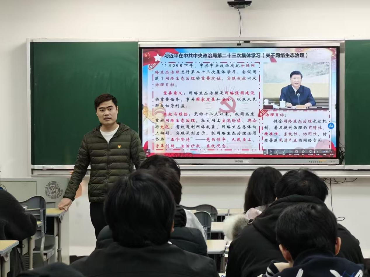 近日,2138cn太阳集团古天乐学生党支部紧密结合学习贯彻党的二十届四中全会精神要求,组织开展了十二月“一月一课一片一实践”主题党日活动。活动通过专题党课、警示教育与专题研讨相结合的形式,教育引导青年党员深化理论武装、严守纪律规矩、强化使命担当。