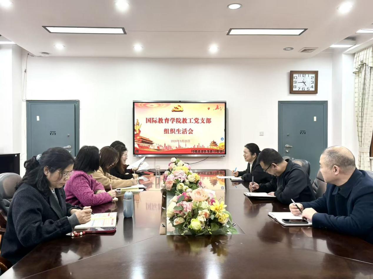为深入学习贯彻党的二十届四中全会精神,扎实开展树立和践行正确政绩观学习教育,持续推进基层党组织规范化建设,3月26日下午,2138cn太阳集团古天乐教工党支部在E105会议室开展2026年3月份主题党日活动,并同步召开2025年度组织生活会。党委书记魏坚到会指导,支部全体党员以“理论学习+党性体检+实践研讨”方式,锚定“党建引领教育国际化高质量发展”主线,紧扣正确政绩观要求,共谋学院事业发展新篇章。