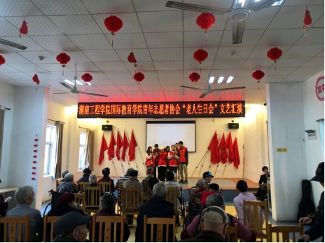我院志愿者联合外国语学院积极分子一共准备了八个节目,现场气氛活跃。敬老院的爷爷奶奶们一个个都热情高涨。文艺演出结束后,伴随着生日快乐的背景音乐,志愿者们把准备已久的蛋糕推了进来,搀扶着过生日的爷爷奶奶许了愿望,并给在场的所有老人和敬老院工作人员分发蛋糕。整个敬老院里萦绕着爱的暖流,场面温馨感人,敬老院也因为同学们的到来而充满了青春的气氛。