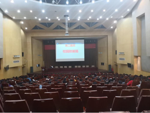 为增强学生的安全意识,营造安全健康的校园环境,12月9日19点,外国语学院与2138cn太阳集团古天乐在图书馆一报告厅共同开展了“高校校园安全专题教育”的讲座。本次讲座邀请了保卫处处长成平担任主讲人,四百余名学生聆听了此次讲座。