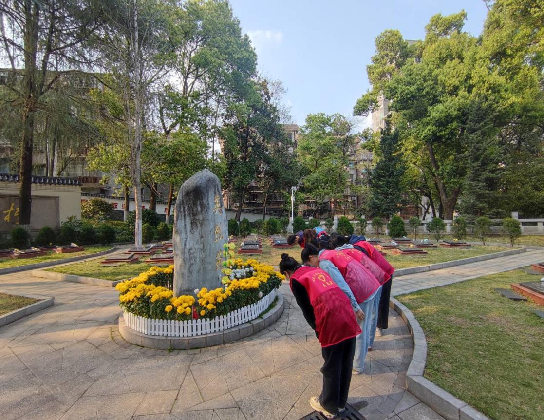 随后,志愿者们参观了陵园里的英烈墙、英烈苑和怀英亭,了解先烈们艰苦的革命经历,深切感受当今幸福生活的来之不易。逝者安息,生者奋进,我们要学习革命先烈“无惧无畏、舍生忘死、不怕牺牲”的英雄气概。