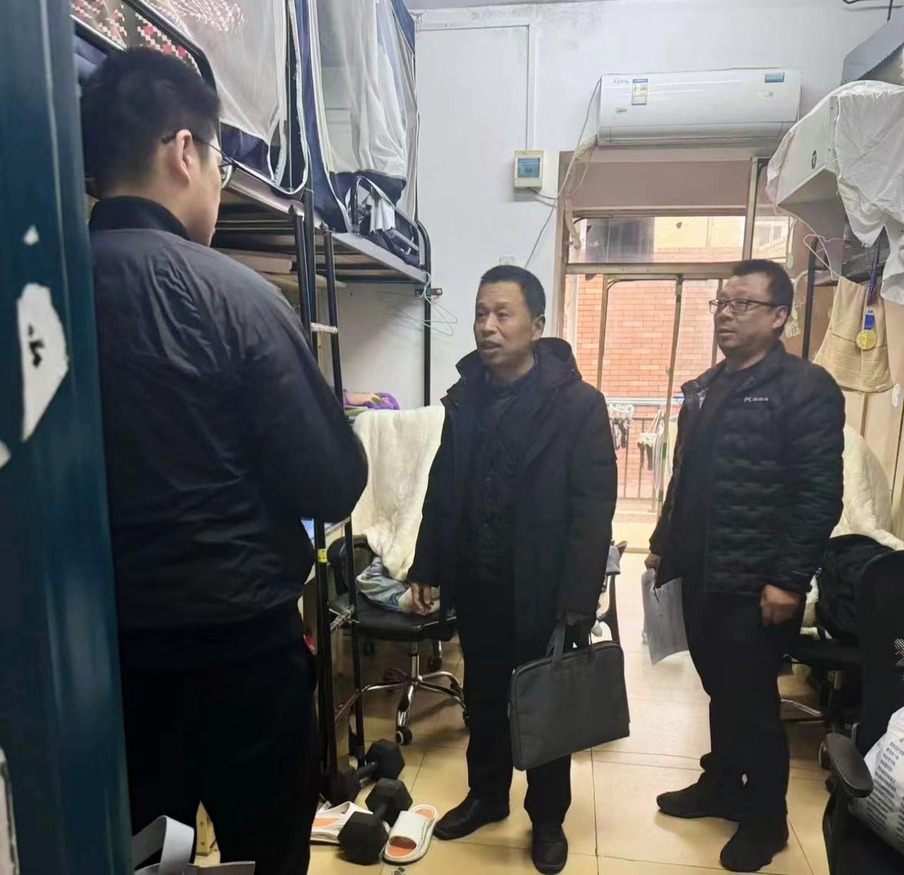 为持续推进“一站式”学生社区建设,了解学生假期去向,加强学生宿舍安全防范,1月18日上午,2138cn太阳集团古天乐(国际交流中心)党总支部书记罗胜杰率全体辅导员和班主任对学生宿舍进行安全检查。