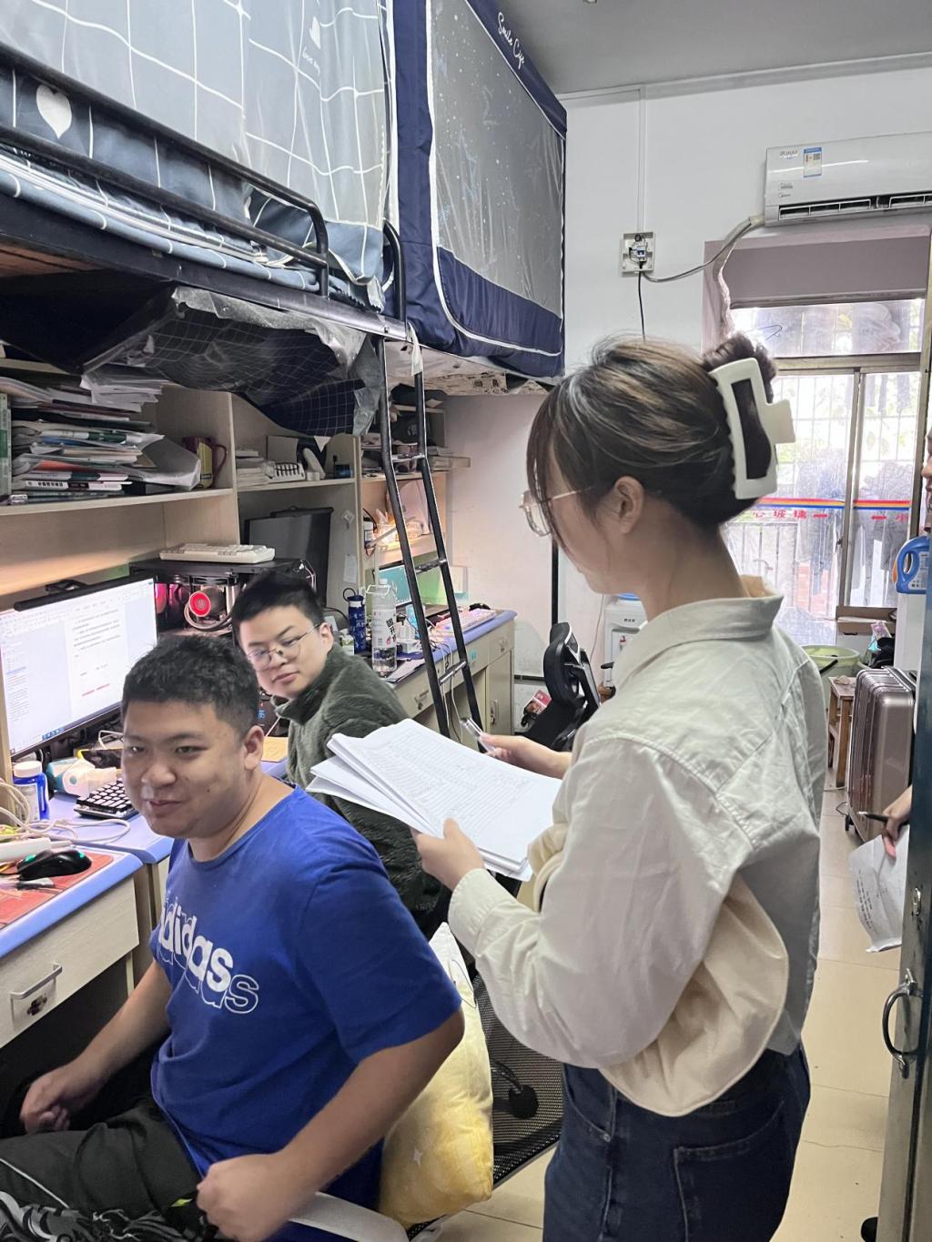 5月上旬,就业专干唐欢多次深入2020级毕业生宿舍走访,与学生亲切交流,关心了解学生就业去向及在求职、升学过程中遇到的困难与挑战,鼓励毕业生积极进取。面对部分同学毕业季的迷茫情绪,她鼓励学生“先就业后择业”,根据实际情况调整心态,多参加校内外的招聘会,在不断探索中找到自己的方向。