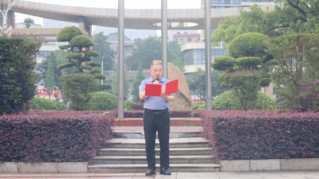 魏坚书记在国旗下讲话。他勉励国教的青年学子勇担重任需坚定信念,要锤炼本领,青春用于奋斗,脚踏实地埋头苦干,团结协作凝聚力量,号召大家勇担使命,以昂扬风貌拼搏奋斗,为国家繁荣和民族复兴贡献力量。