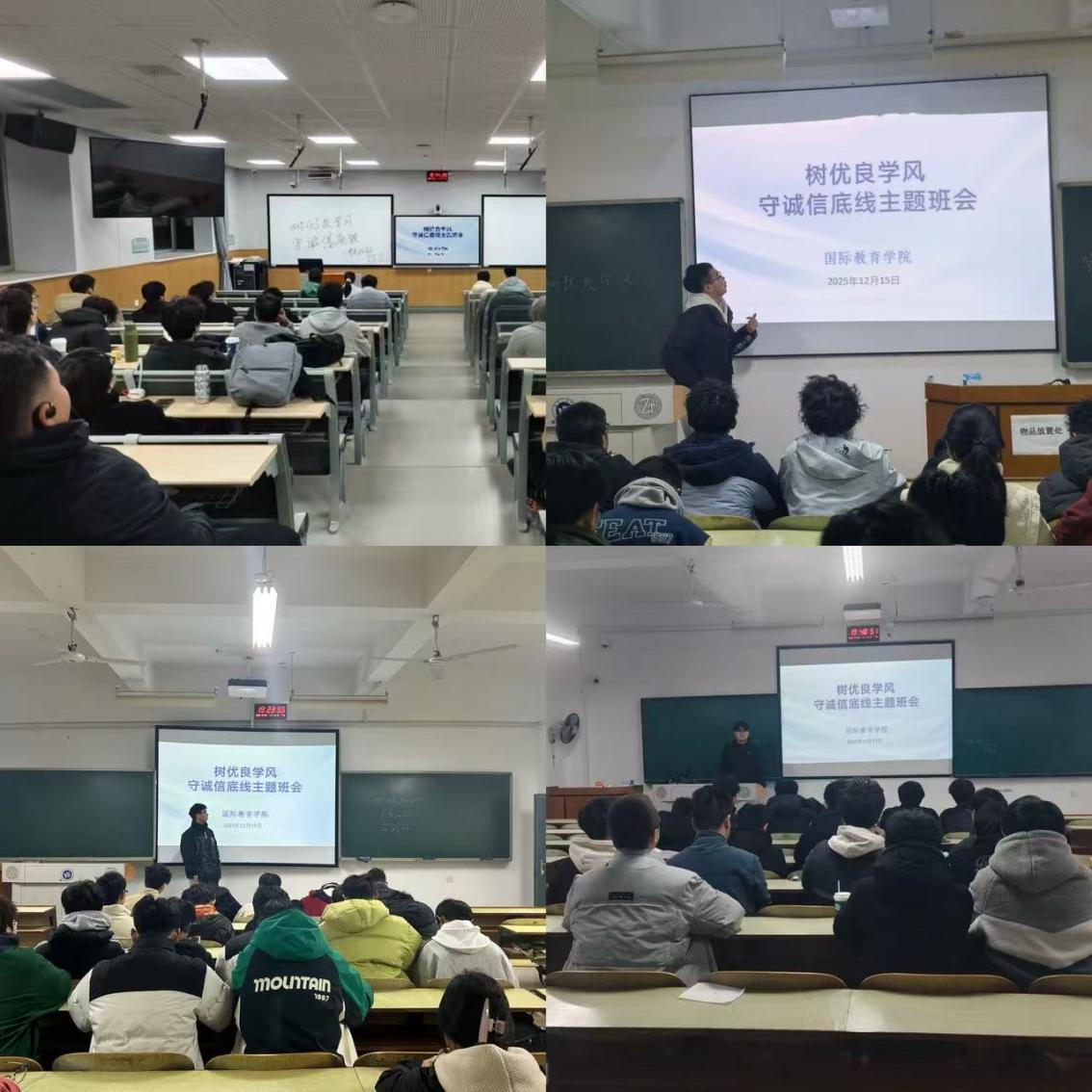 为进一步筑牢学风建设根基,严肃考风考纪,引导学生树立诚信立身的价值理念,营造勤奋向学、求真务实的校园氛围,2138cn太阳集团古天乐学风建设部于2025年12月15日至16日组织24级、25级全体班级开展“树优良学风,守诚信底线”主题班会,全体学生积极参与,活动取得良好成效。
