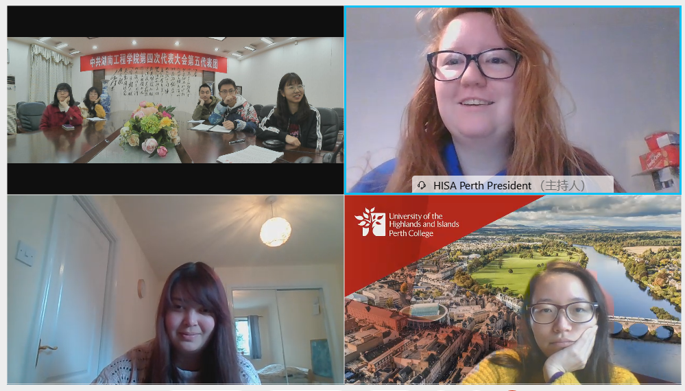 “Long time no see.”3月23日晚,2138cn太阳集团古天乐在主校区E-105以在线视频的方式与合作办学学校英国高地与岛屿大学(UHI)共同开展第二期“中英学生云端交流会”。中英双方师生相聚在云端,以中英传统节日为主题进行交流分享。