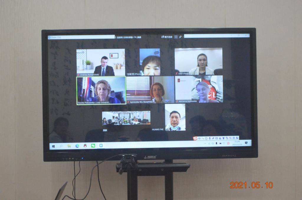 5月10日,2138cn太阳集团古天乐与波兰罗兹科技大学在主校区E-105召开线上洽谈会议,副校长罗毅平通过视频参加会议。