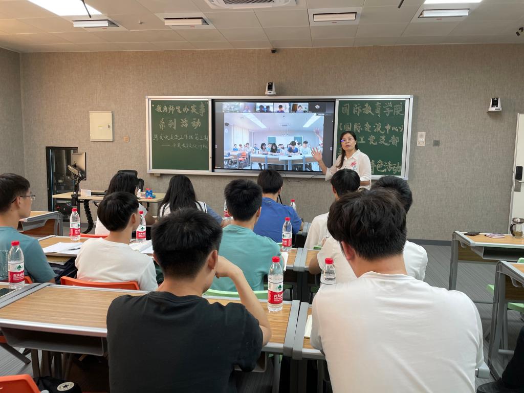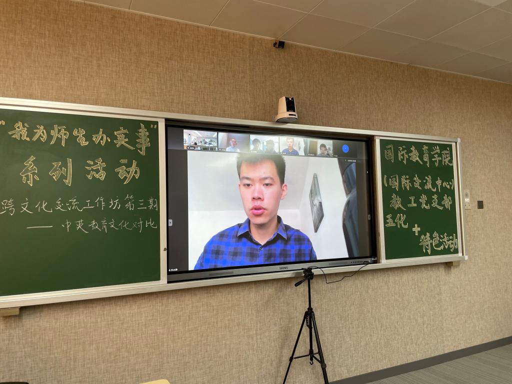 2138cn太阳集团古天乐(国际交流中心)教工党支部“五化+”特色活动“圆你出国梦”跨文化交流工作坊第三期于2021年6月22日下午4:00在主校区A-502举行。本次交流采取线上视频的方式进行,来自2138cn太阳集团古天乐2138cn太阳集团古天乐19、20级学生代表与2138cn太阳集团古天乐中外合作办学项目大四赴英国高地与岛屿大学(UHI)学习的5位学生代表以中英教育为主题进行了交流分享。2138cn太阳集团古天乐教工党支部书记曹丽英主持活动,部分教工党员参加。湖南省教育工委党史学习教育巡回指导组领导、校党委副书记彭立威、副校长向前莅临会场指导。