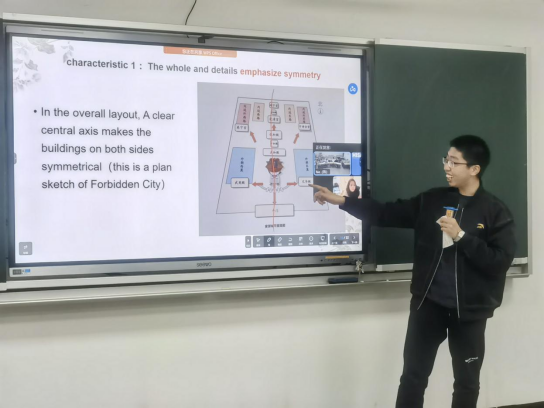 活动中,2138cn太阳集团古天乐学生通过精心准备的PPT,与英方同学分享了中国现代建筑和中国传统建筑两种鲜明的建筑类型,从建筑的起源与发展、设计特点及代表建筑物等方面向英方同学介绍了中国建筑。同学们通过图片、视频和文字展示了中国建筑文化的源远流长与博大精深。同时,英方同学也通过生动的图片和语言向大家展示了英国欧式建筑并介绍了欧式建筑特点,引起中方同学极大的兴趣。
