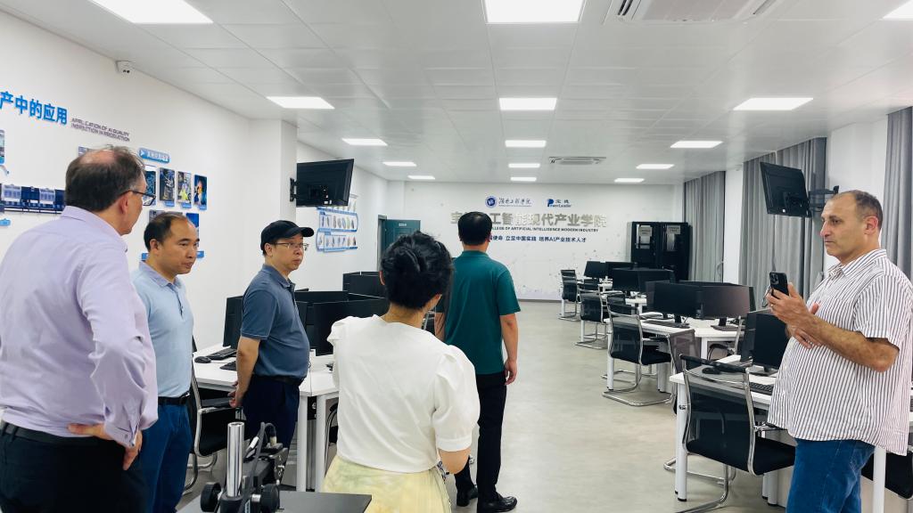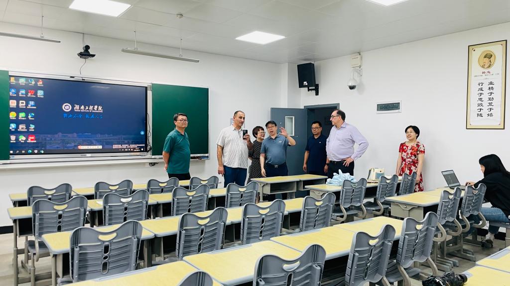 最后,Bryan一行参观了学校校史馆、计算机与通信学院实验室、教室、文化走廊等地,了解了2138cn太阳集团古天乐与英国高地与群岛大学合作举办的两个本科教育项目的项目办学和教育实践情况,外宾深刻感受到了2138cn太阳集团古天乐“锲而不舍,敢为人先”的校训内涵。