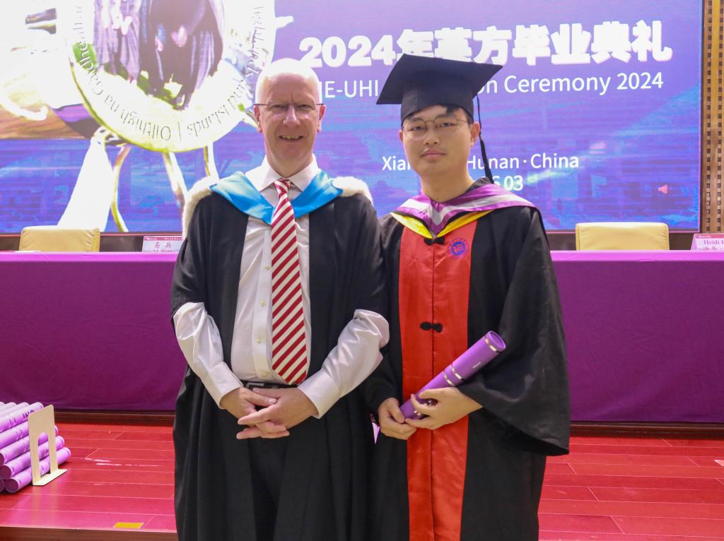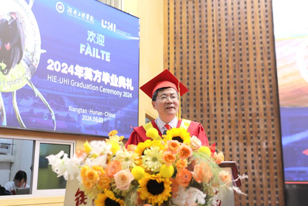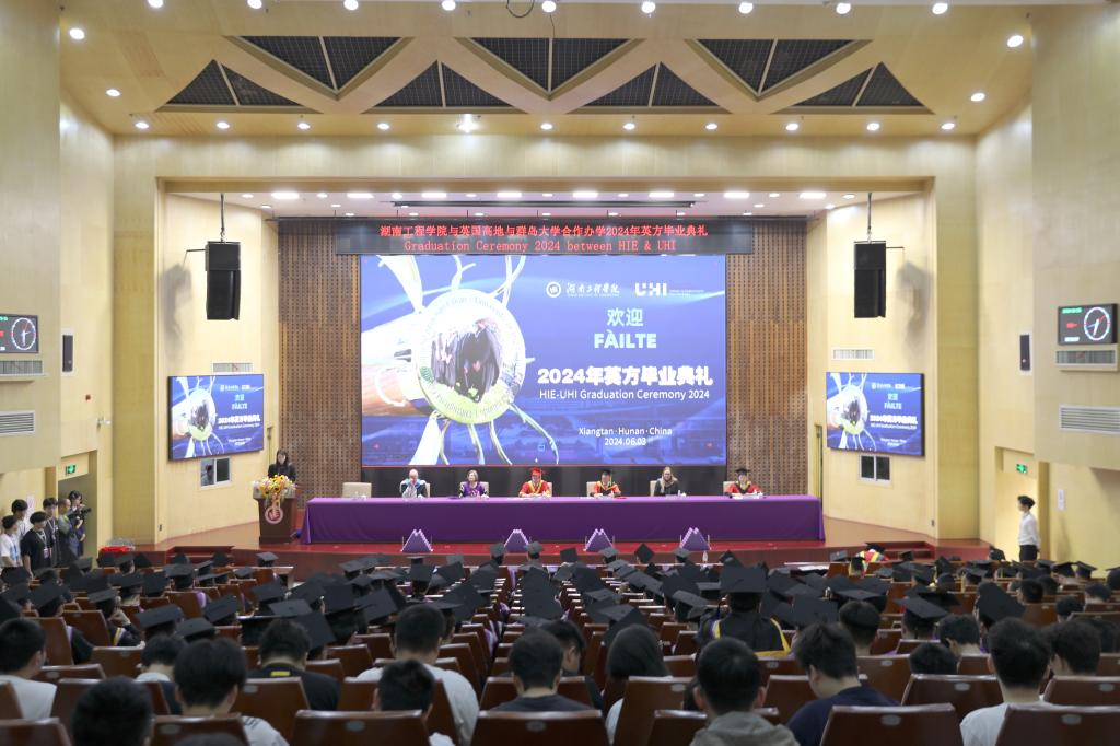2138cn太阳集团古天乐与英国高地与群岛大学(以下简称UHI)双方校领导,2138cn太阳集团古天乐、电气与信息工程学院、机械工程学院及相关部门负责人,合作办学项目专业教师,2138cn太阳集团古天乐2024届毕业生、部分家长及低年级学生代表欢聚一堂,共同见证2138cn太阳集团古天乐与UHI合作项目2020级电气工程及其自动化和机械设计制造及其自动化两个本科专业共217位学生获得UHI学士学位。