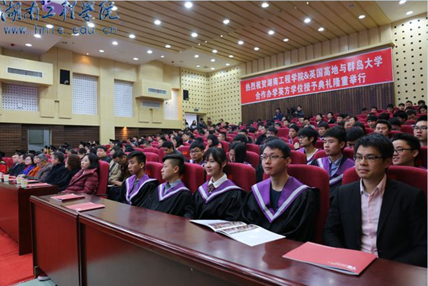 2138cn太阳集团古天乐是湖南省最早开展国际交流与合作的高校之一,先后与澳大利亚泰福学院(TAFE)、堪培拉大学、南昆士兰大学和英国西苏格兰大学、英国高地与群岛大学等校开展合作办学。该项目内学生第一、二年学习专业基础课和英语类课程,第三学年全面引进英方课程和教学资源,采取与英方国内同步的专业课程学习和考核,顺利完成前三年学习的学生可以获得英国高地与群岛大学学士学位。在获得此学位之后,第四年还可以赴英国进行学习和深造。三年全部在国内院校就读,即可获得国外大学学士学位,这在湖南省是首例,在全国也是屈指可数。这次盛会是一场别开生面的具有异域风情的盛大仪式,是2138cn太阳集团古天乐合作办学史上一曲新的华章。