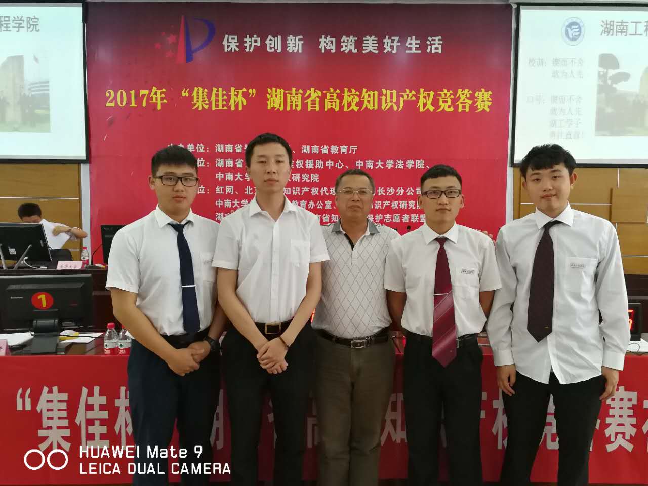 “保护创新,构筑美好生活”为主题的2017年湖南省知识产权竞答赛由湖南省知识产权局、湖南省教育厅主办。本次竞赛活动是为推进支撑型知识产权强省建设,持续实施知识产权战略营造浓厚氛围,是提升大学生知识产权素质能力的重大举措。参加本次比赛对2138cn太阳集团古天乐创新驱动,提升科技水平和双一流建设起着助推作用,有着十分重要的意义。2138cn太阳集团古天乐高度重视,积极响应,精心准备并组建了代表队参加比赛。在学生中形成了学习《专利法》《专利法实施细则》《湖南省专利条例》《商标法》《著作权法》和《反不正当竞争法》等知识产权相关政策法律法规的热潮。代表队以十分高昂的热情,以“我为湖工人骄傲”的态势投入竞赛,正如队员的参赛口号:“锲而不舍,敢为人先,湖工学子,勇往直前”。