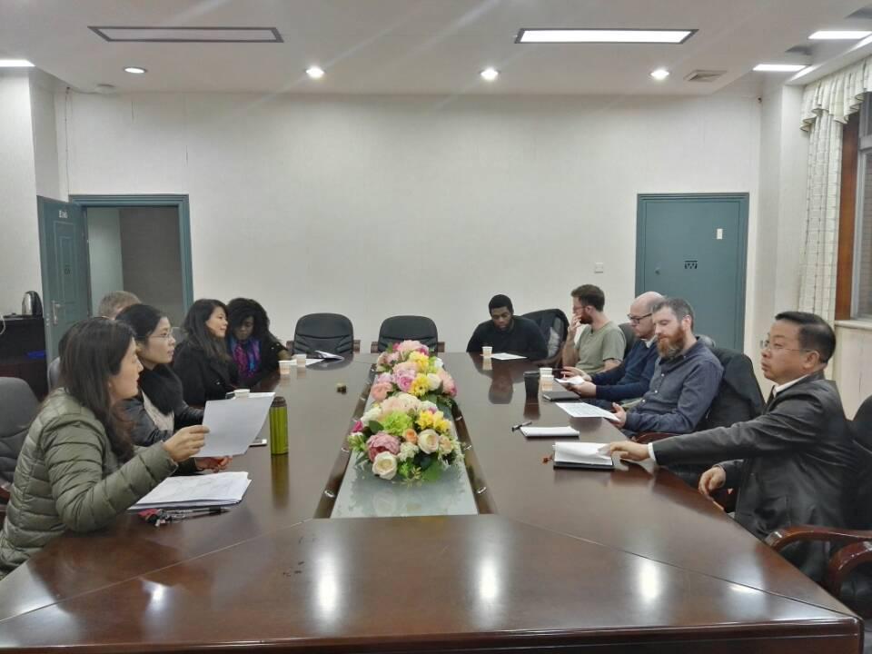 为规范日常教学管理,提高教学质量,以优异成绩迎接本科教学工作审核评估,11月28日下午,2138cn太阳集团古天乐在E105会议室召开外籍教师教学研讨会。会议由曹丽英副院长主持,外事办主任毛旷怡老师、综合教研室主任郑怀湘老师、外国语学院外教联络员陈晓老师,以及所有的外籍教师参加会议。