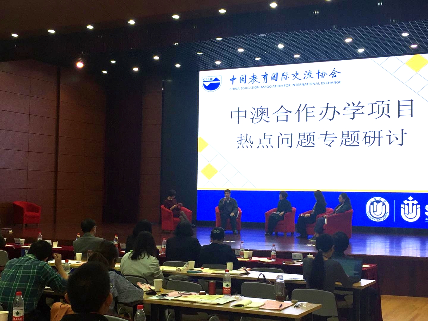 4月2日,由中国教育国际交流协会中外合作办学专业委员会主办、上海大学悉尼工商学院承办的中澳合作办学研讨会在上海大学举行,来自国内60余所中澳合作办学机构(项目)的专家学者参加此次盛会并进行专题研讨。我院院长邓奕、综合教研室主任郑怀湘应邀参加了本次研讨会。