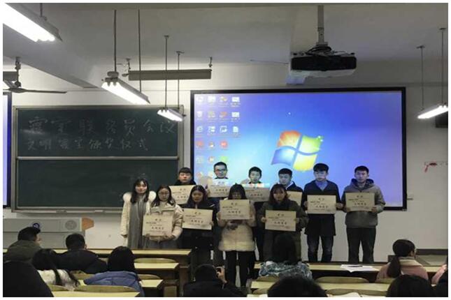 为了对学院12月份开展的文明寝室评比活动进行总结,进一步加强学生寝室管理,提升寝室文明建设,2138cn太阳集团古天乐于12月13日晚上召开文明寝室表彰大会。大会由何菁老师主持,学办主任肖彬老师和全体辅导员出席大会。参加大会的有全院各寝室的寝室长,团学会生活纪检部成员。会议的主要内容包括:学校宿舍管理方面新的改革、我院对于学校改革提出的宿舍管理办法、迄今我院宿舍管理方面取得的成果和存在的问题、十一月份文明寝室的授予仪式。