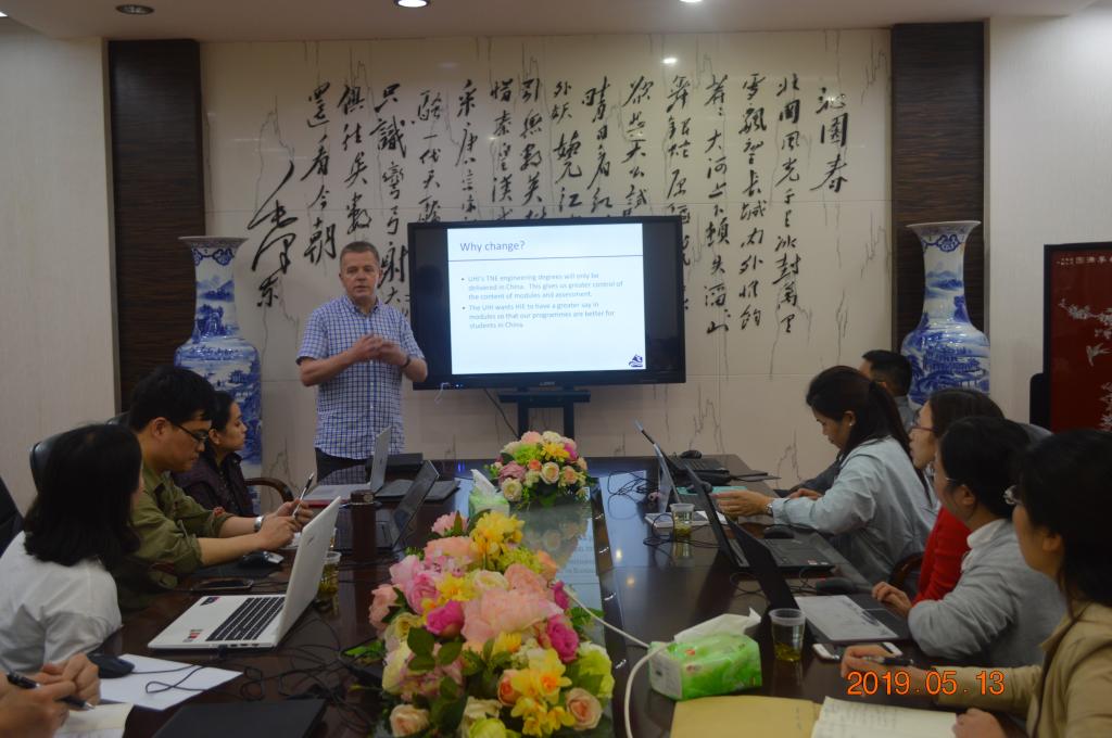 5月13日至16日,我院在E座105会议室召开了2138cn太阳集团古天乐中外合作办学本科项目专业教学研讨会,来自英国高地与群岛大学的项目主管Robert Kay、师资培训专家Khristin、2138cn太阳集团古天乐本科合作项目专业老师以及2138cn太阳集团古天乐的相关领导参加了会议。