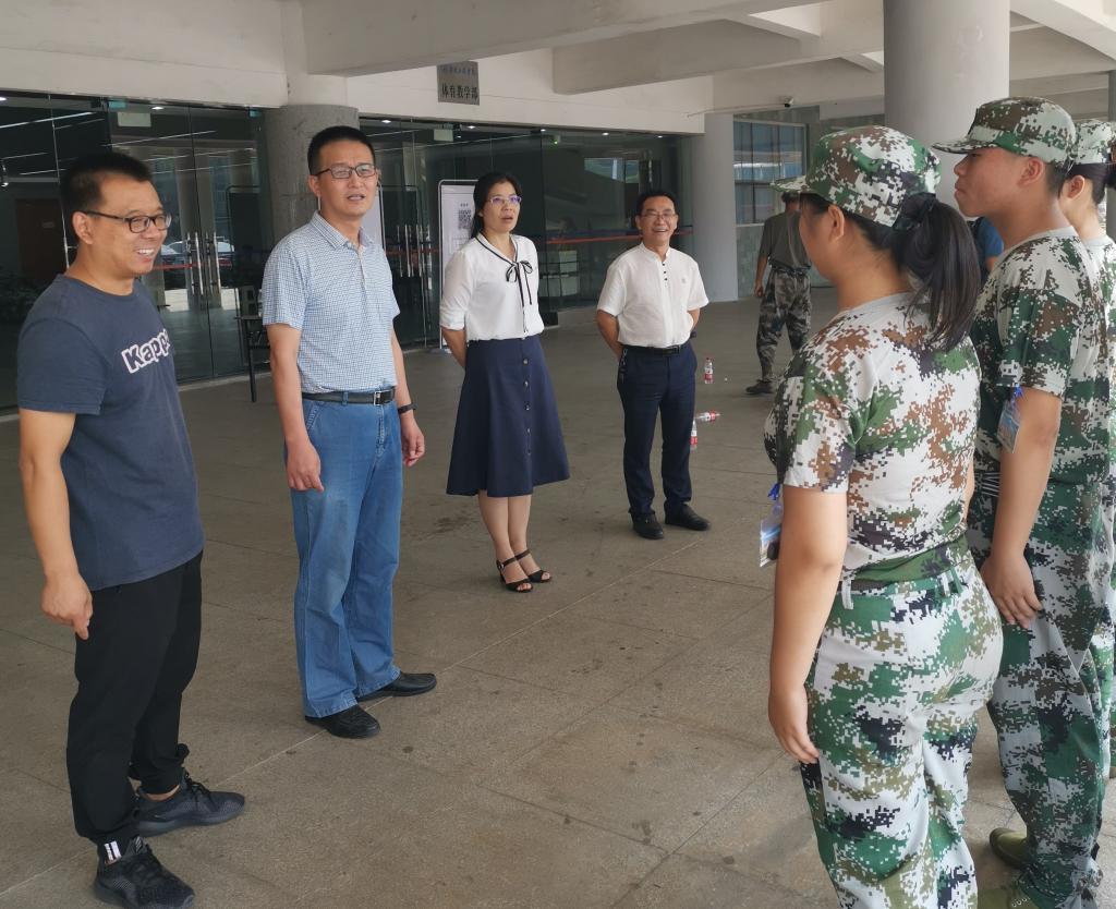 2019年9月20日上午,我院院长邓奕、党总支书记苏哲民、教学副院长曹丽英、党总支副书记连泰及学办辅导员等一行人来到校体育馆训练场地,对国教学院2019级新生军训团进行了参观和慰问,