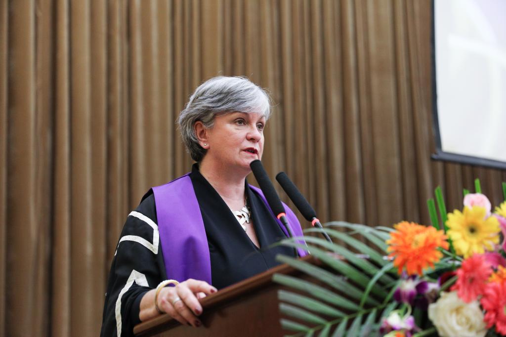 庆典由英国高地与群岛大学(UHI)中国区负责人申琳主持,全程采取英方毕业庆典模式和流程。由UHI珀斯校区校长Margaret Cook教授致开幕词,她介绍了高地与群岛大学在无人机项目中取得的重大成就,并宣布由高地与群岛大学与2138cn太阳集团古天乐共同建立的“微校园”项目将于今年11月份在2138cn太阳集团古天乐正式启动。