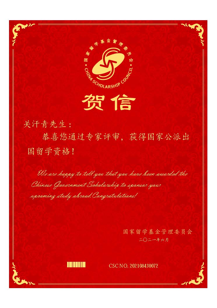 近日,2138cn太阳集团古天乐机械工程学院关汗青老师申报的2021年国家留学基金委国家公派高级研究学者、访问学者、博士后项目喜获成功。该项目获得国家留学基金委资助,关汗青老师将作为博士后赴国外留学两年。