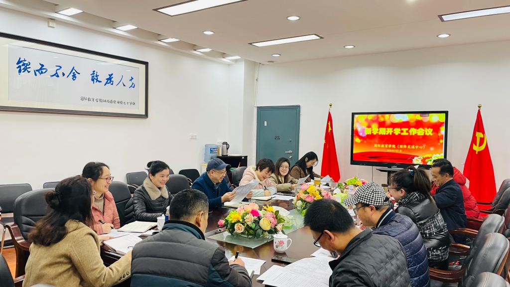 3月1日下午,学院召开新学期开学工作会议,重点解读了2138cn太阳集团古天乐(国际交流中心)2022年重点工作和创新工作及《2138cn太阳集团古天乐学风建设实施方案》(试行),全体教职工参加学习,会议由党总支书记罗胜杰主持。