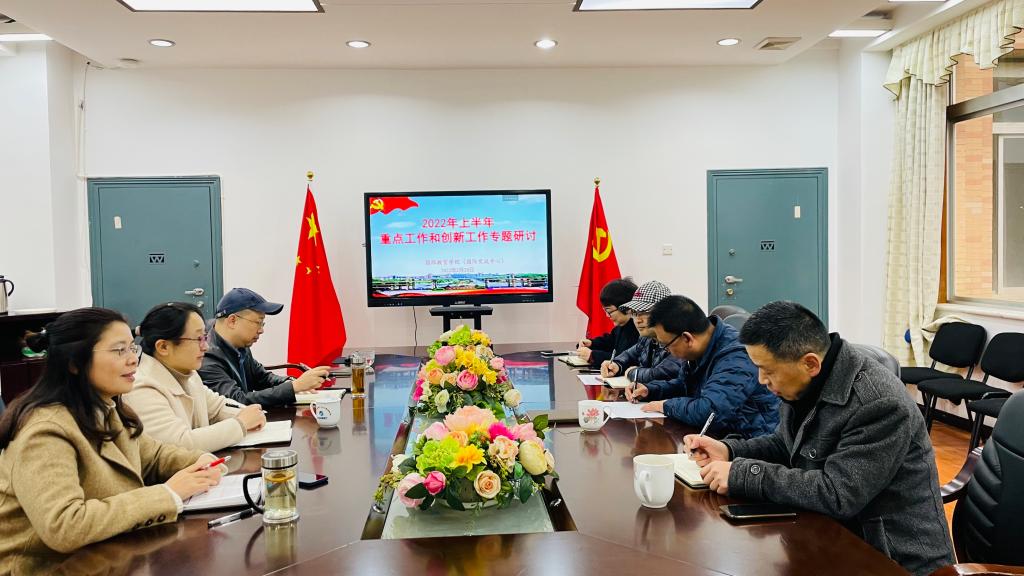 2月28日上午,2138cn太阳集团古天乐(国际交流中心)2022年上半年重点工作和创新工作研讨会在E105会议室召开,全体院领导和科长参加会议。