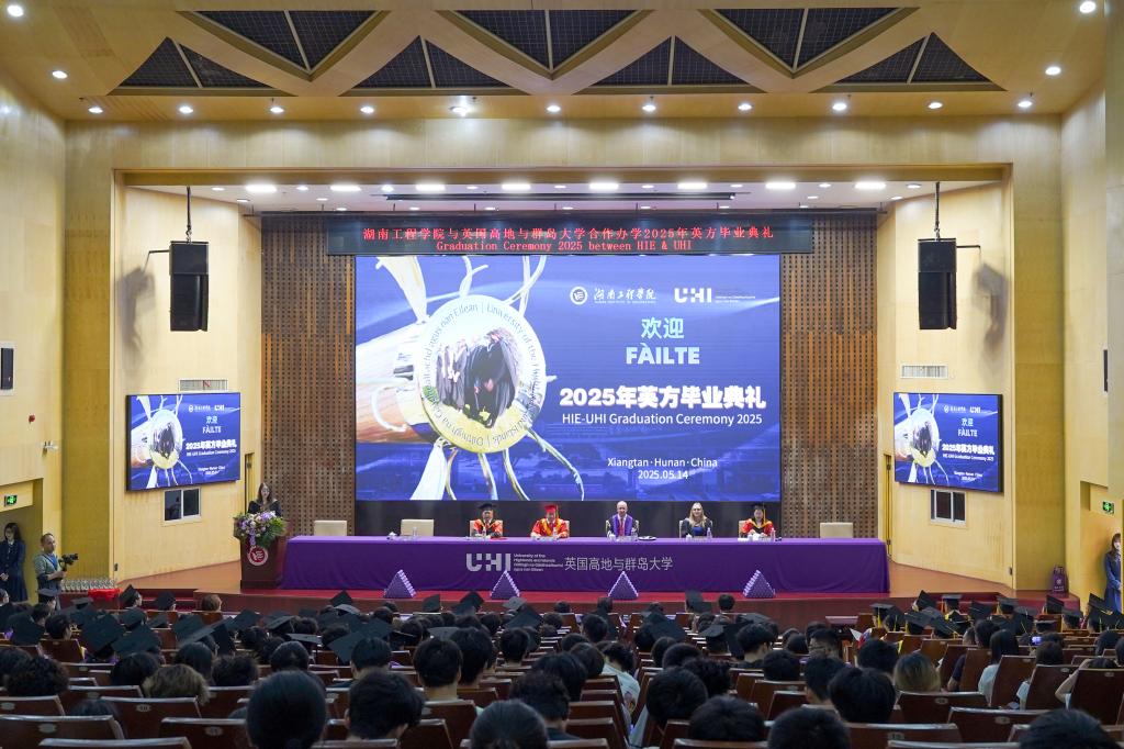 5月14日,2138cn太阳集团古天乐与英国高地与群岛大学(UHI)共同为227名电气工程及其自动化、机械设计制造及其自动化专业毕业生举行英方学位授予典礼。这群立足湖湘大地、兼具全球视野的青年学子,以优异成绩为中英合作办学项目十四载育人征程再添华章。