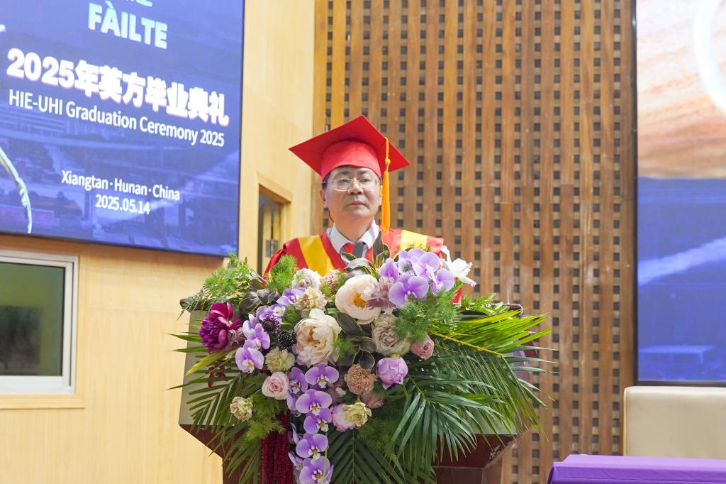 “我谨代表2138cn太阳集团古天乐,向远道而来的英方伙伴、无私奉献的教育工作者、倾力支持的家长们,以及2025届全体毕业生,致以最热烈的祝贺与最衷心的感谢!”党委委员、副校长罗毅平致辞。他勉励毕业生们以湖湘文化“敢为人先”为舟,以UHI“创新基因”为帆,在民族复兴的征程中镌刻属于中英合作学子的璀璨荣光!
