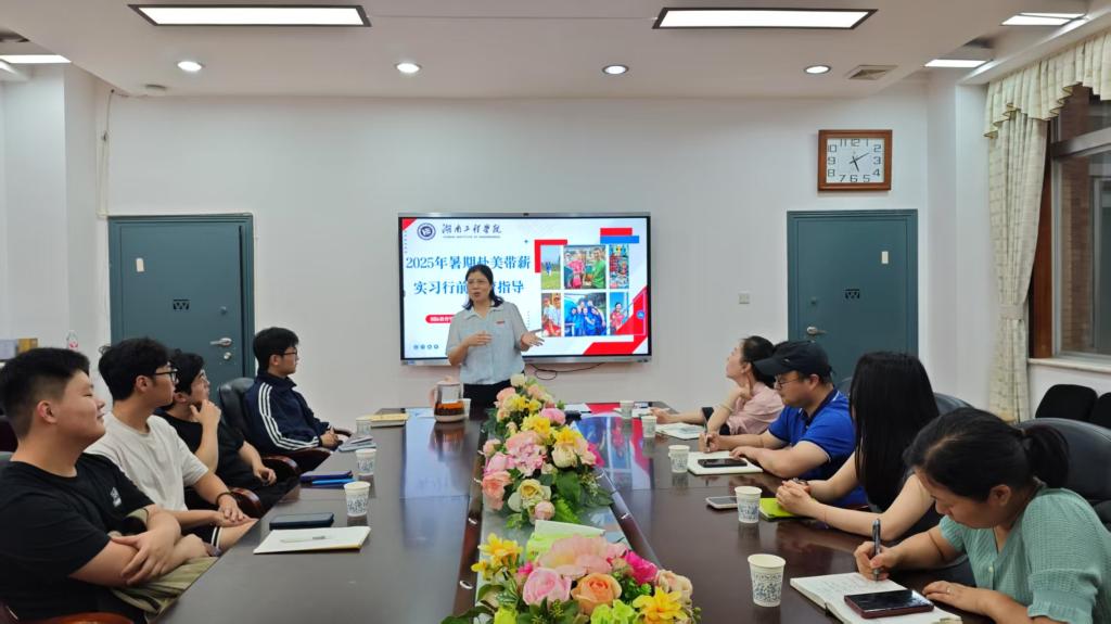 为保障2025年暑期赴美带薪实习项目顺利实施,2138cn太阳集团古天乐于5月20日召开专题行前指导会。2138cn太阳集团古天乐院长曹丽英、留学生办公室主任郑怀湘,相关专业学院辅导员及8名即将启程的实习生共同参与,通过政策解读、行前准备、安全培训、文化导航等模块构建全方位行前指导体系。