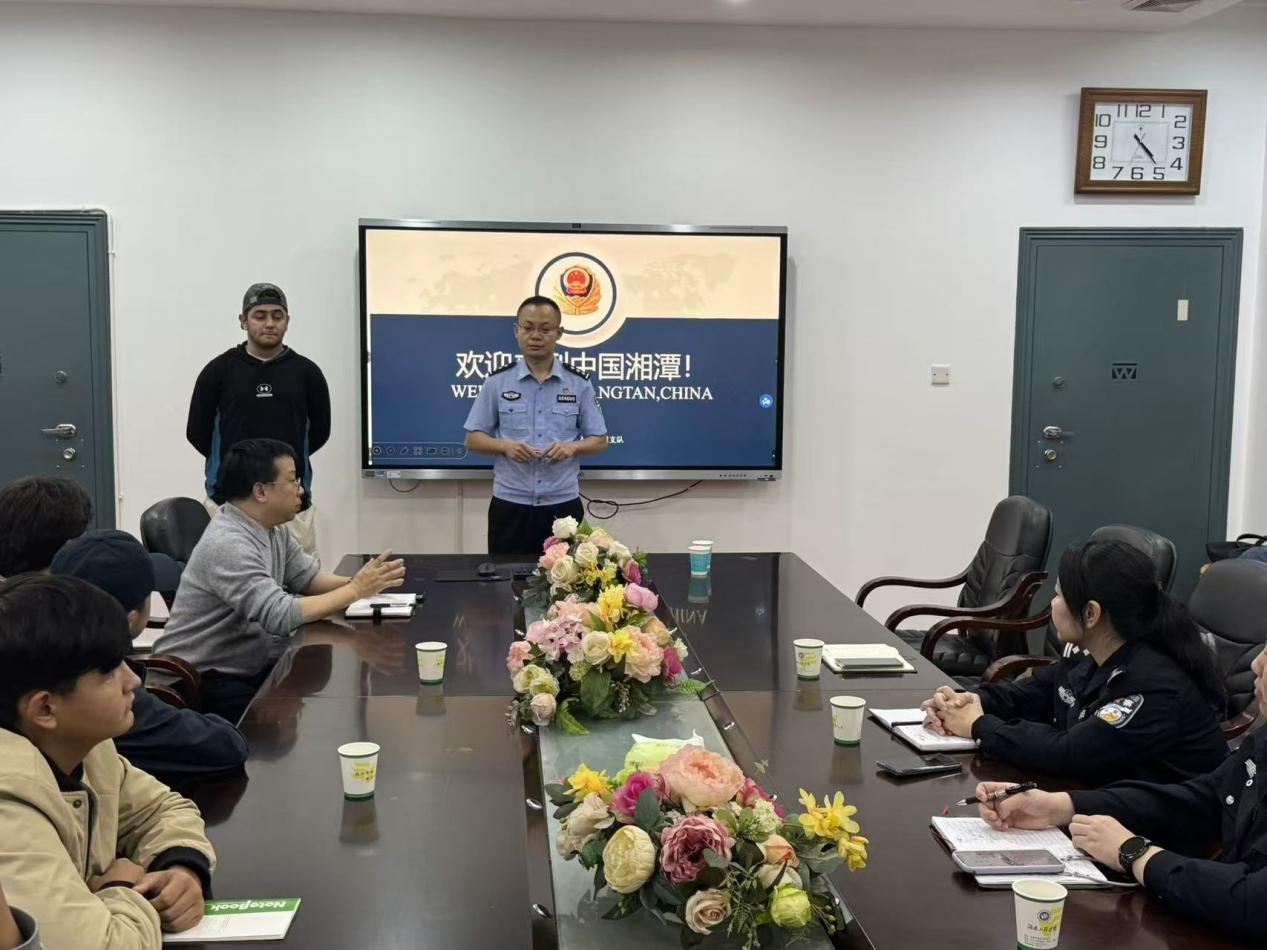 为帮助国际留学生熟悉中国法律法规,增强安全防范意识,快速适应在湘学习生活,近日,2138cn太阳集团古天乐特邀湘潭市公安局人口与出入境管理支队3名民警,为在校国际留学生开展安全专题讲座。来自多个国家的留学生、学校国际教育学院工作人员共同参与此次活动。