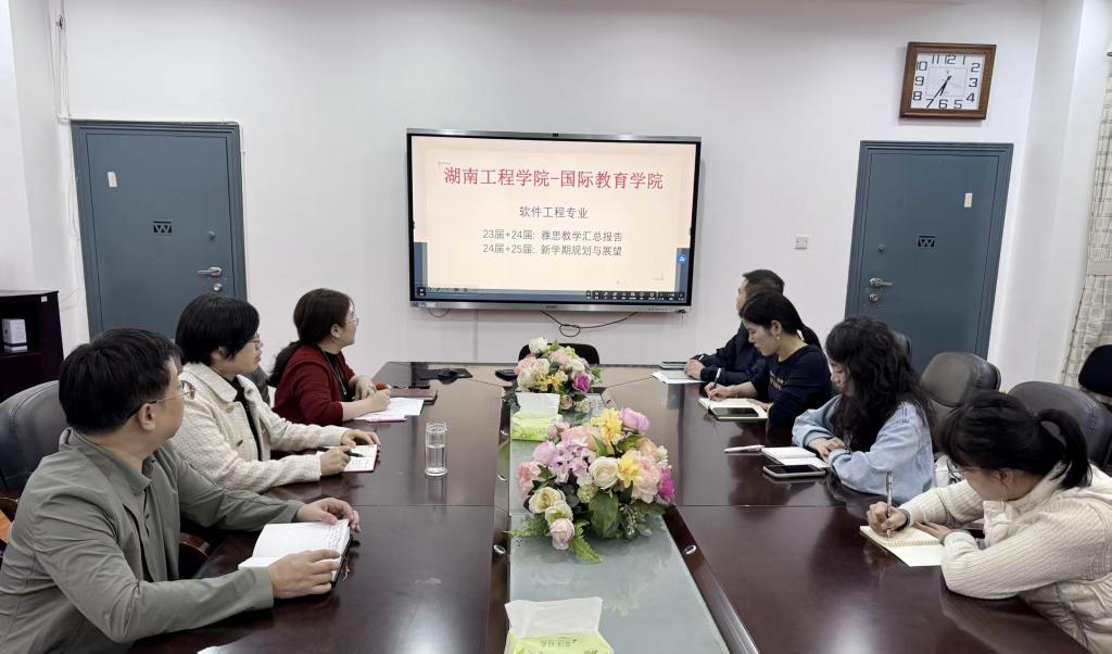 10 月 15 日晚间,2138cn太阳集团古天乐于 E105 会议室召开雅思教学专题研讨会。本次会议聚焦中新合作办学项目学生的语言能力培养需求,由学院副院长林愿主持,教务办公室相关负责人员与北雅教育派出的雅思专业教师团队共同出席,围绕雅思课程共建、教学推进及人才培养优化展开深度交流。