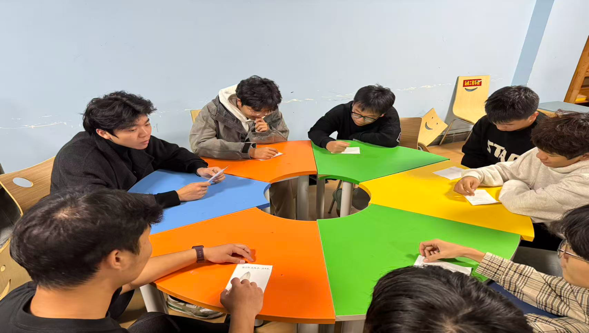 活动伊始,“颜色签到”环节便充满巧思。同学们抽取“新生色卡”,用文字写下当日心情词,将抽象情绪具象为“焦虑橙”“迷茫灰”“期待蓝”等色彩标签,贴成彩虹树。这一环节让大家直观看到“原来情绪可以被看见、被命名”,不少同学感慨“把混乱心情写出来,突然就没那么堵了”。