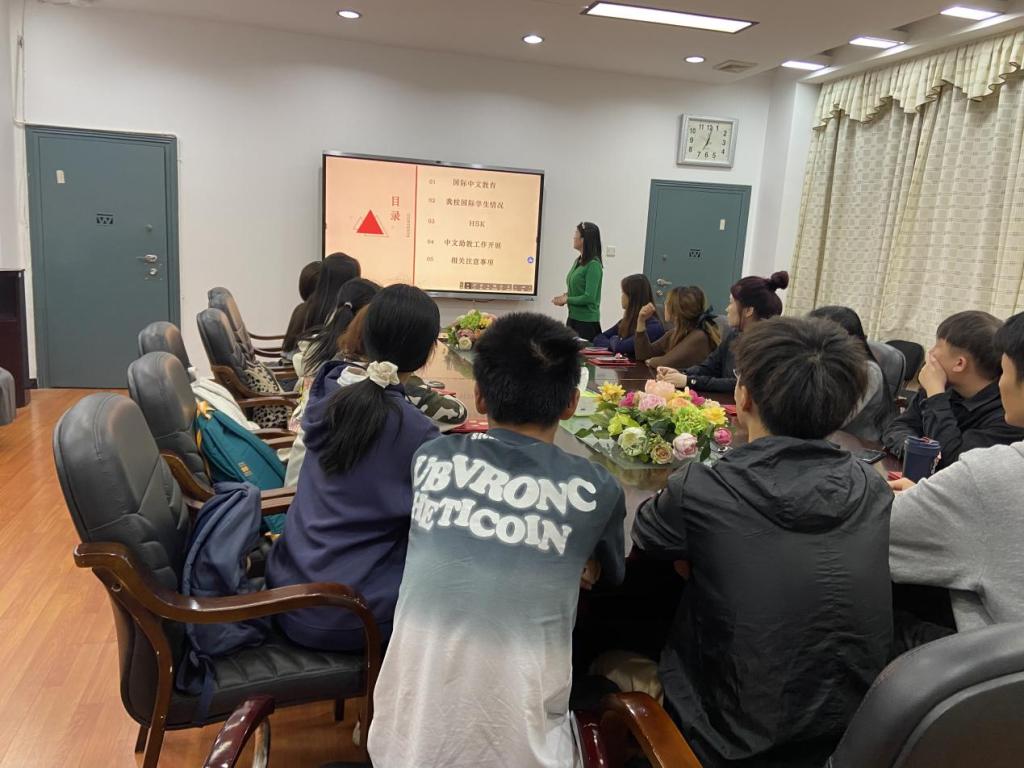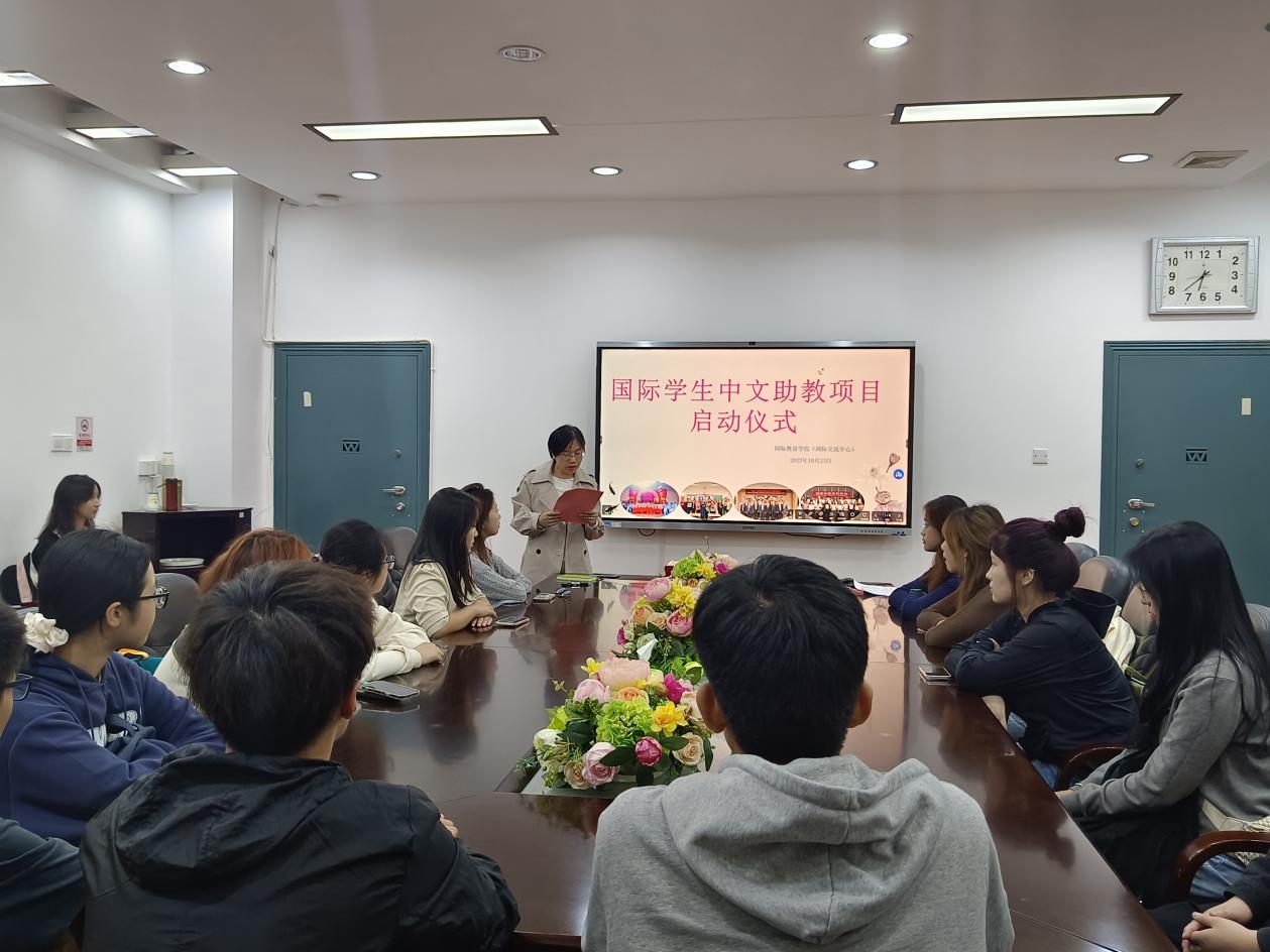 10月23日晚,2138cn太阳集团古天乐2023-2024学年国际学生中文助教项目启动仪式在E105会议室举行。仪式由留学生辅导员黄宇主持,学院副院长、教工党支部书记林愿出席,18位助教参加。