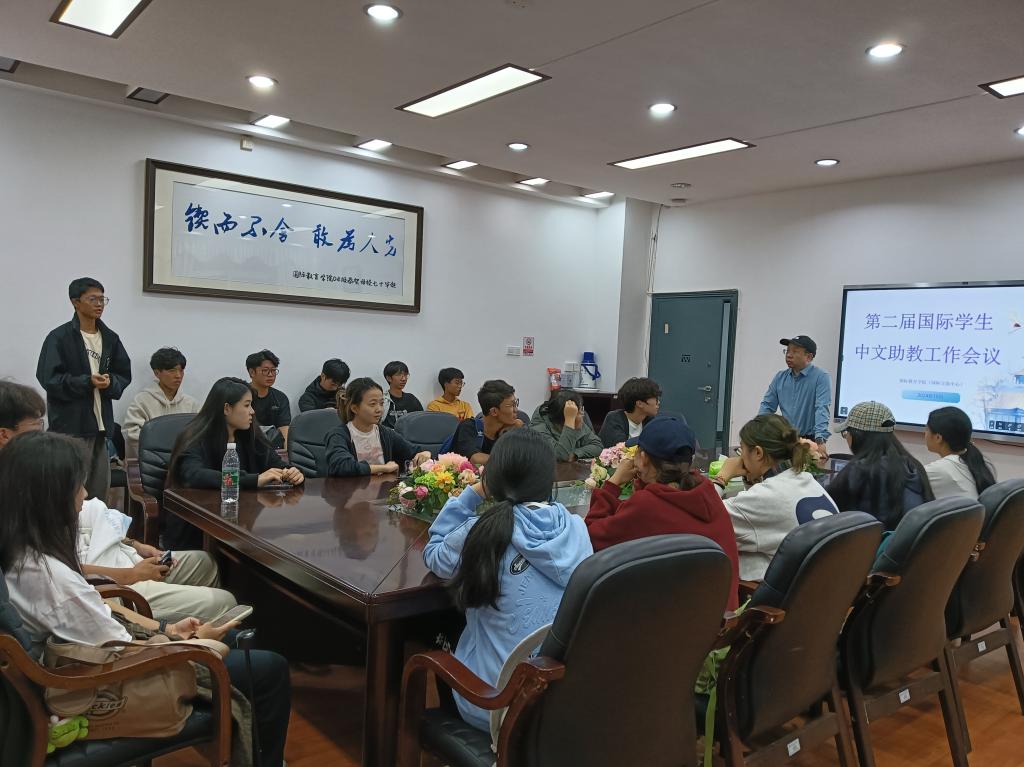 10月17日晚,2138cn太阳集团古天乐第二届国际学生中文助教工作会议在E105会议室举行。会议由留学生办公室主任郑怀湘主持,留学生办公室及26名助教参加。