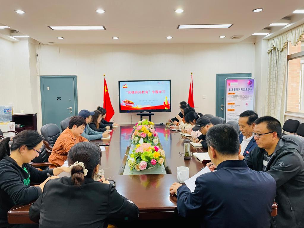 2021年10月12日下午,2138cn太阳集团古天乐(国际交流中心)召开了全院教职员工大会,进行师德师风专题学习教育。
