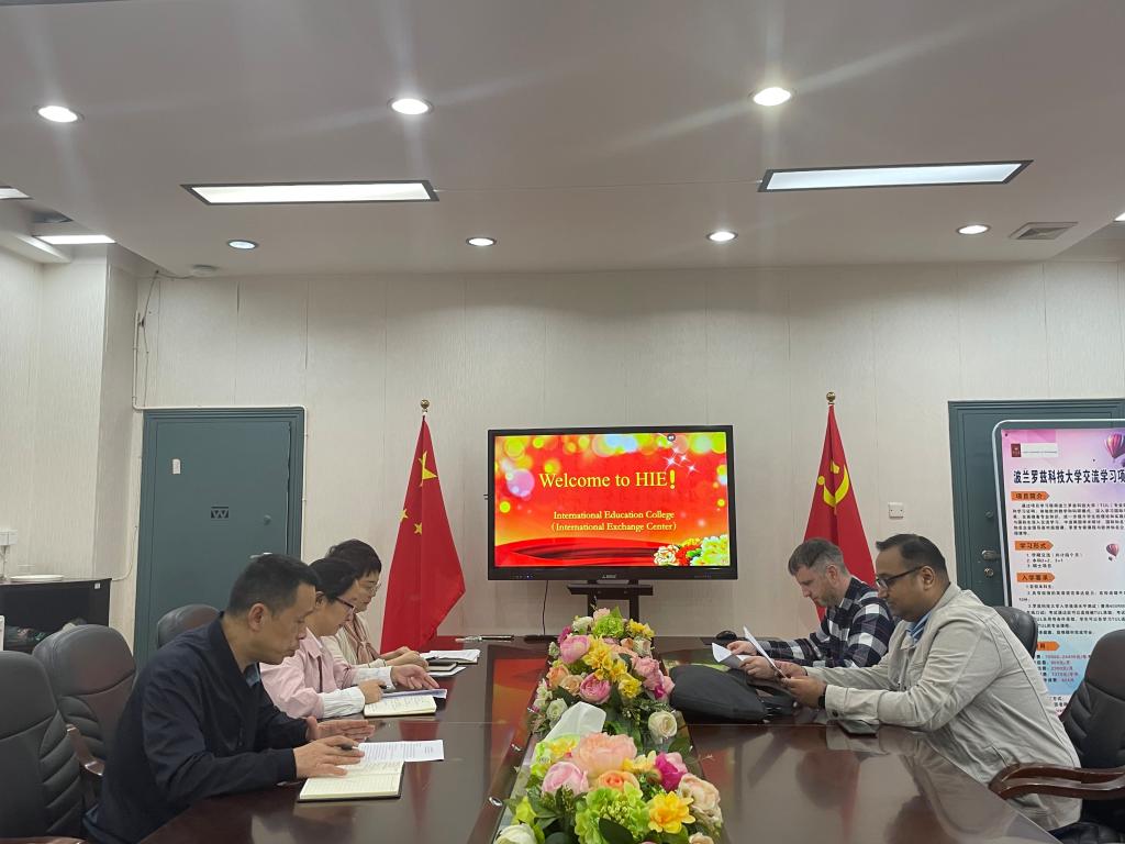 为进一步规范外教管理,提高教学质量,10月9日上午,2138cn太阳集团古天乐(国际交流中心)在E105召开了外籍教师交流会。会议由外事办主任张丹主持,党总支书记罗胜杰、副院长彭禹以及两位在校外籍教师参加。