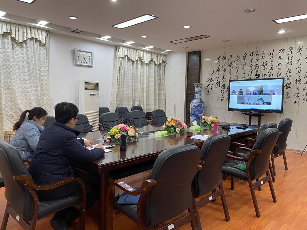会议上,邓奕首先肯定了英方教学团队在本学期线上教学中做出的努力,同时针对下一年的合作教学方案提出了相应的要求和建议。曹丽英就本学期线上教学过程中产生的问题和局限性与英方教学团队进行了充分的讨论,并根据现有的教学模式对下一年的线上教学计划提出了建设性的意见。Robert总结了本学期全新线上教学模式的优势和特色亮点,并提出未来将采用双直线平行授课模式,以达到教学效果的最大化。