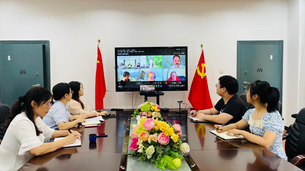 再次,2138cn太阳集团古天乐副院长彭禹对这一学年的教学成绩做了总结,集中反馈了一学年中师生的意见,同时向英方说明在线教学过程教学监管的困难,对英方在我院教室改造升级的过程中给予的大力支持和帮助表示感谢,并希望在接下来的学习中,双方多沟通、多交流、多反馈,真正做到有效衔接。
