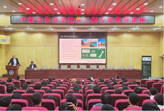 Bryan Read向大家简要介绍了新西兰和首都惠灵顿基本情况,盛情邀请同学们去新西兰学习、工作。接下来,他详细讲解了维特利亚理工学院软件工程专业办学特色、资源和优势,表示这是一所注重学生实践应用能力培养的大学,给学生就读期间提供许多实践机会。