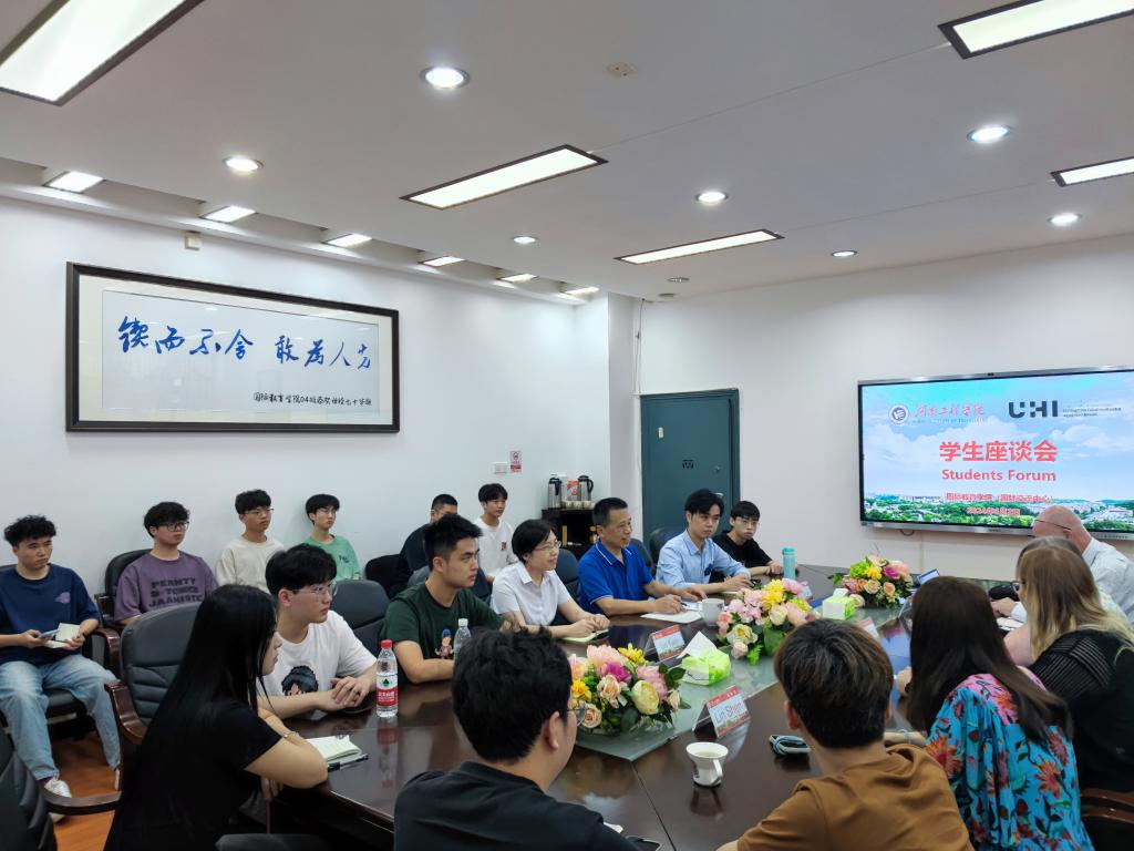 6月2日下午,2138cn太阳集团古天乐在E105会议室召开中英合作办学项目学生座谈会。会议由学院党委书记罗胜杰主持,副院长林愿、中外合作办王宇轩出席会议。英国高地与群岛大学珀斯校区副校长Veronica、科学技术工程与数学学院院长Nicky、科学工程与航空系主任Heidi、国际合作负责人申琳与我院大二、大三学生代表深入交流。