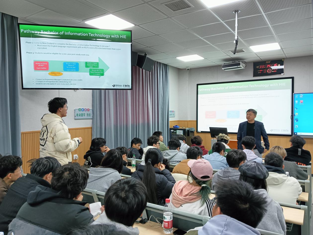 在互动交流环节,与会学生围绕语言能力提升、奖学金政策、升学就业支持等热点问题踊跃提问,会场气氛热烈。学生纷纷表示,宣讲让我们了解到新西兰的教育体系,进一步明晰了成长路径,真切感受到国际联合培养对个人发展的赋能作用。
